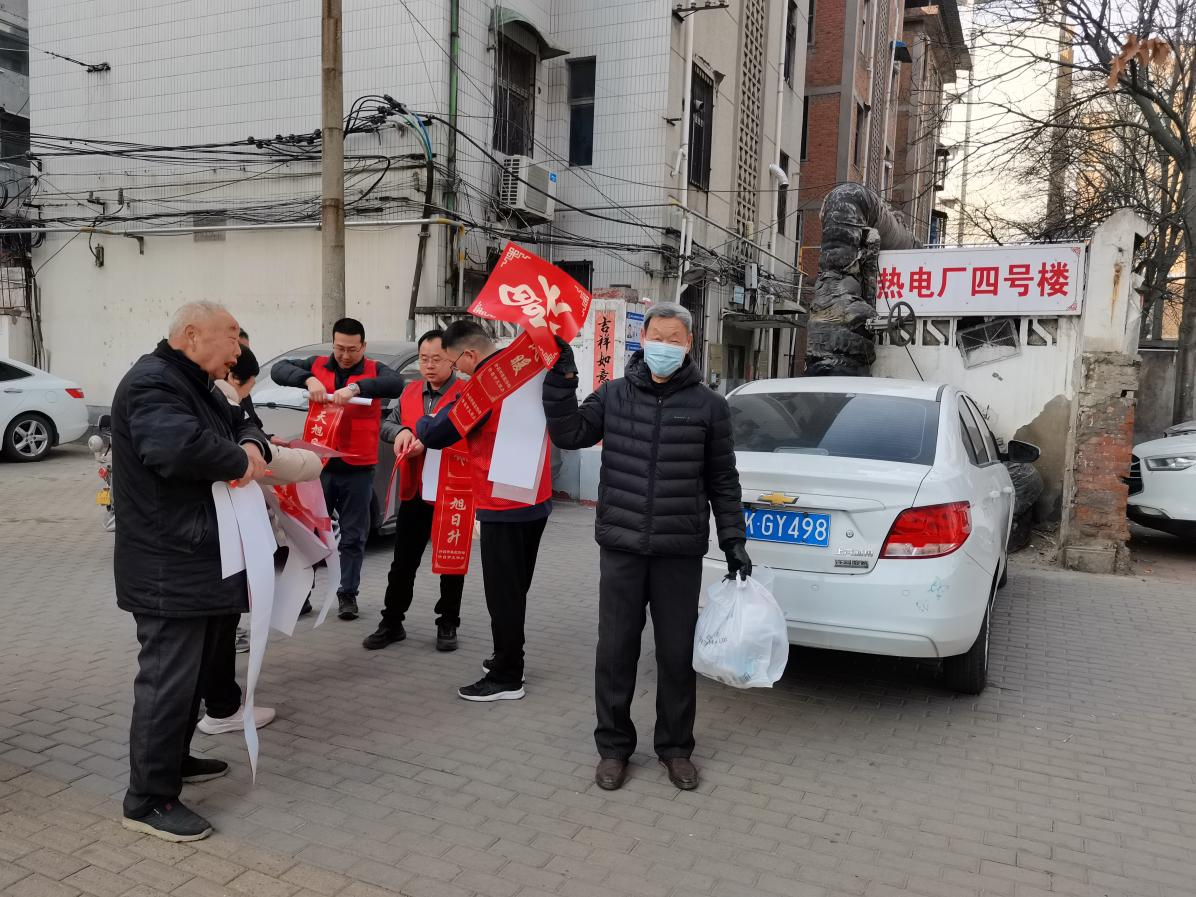 志愿者们热情地与居民交流谈心,详细询问大家的生活状况和实际需求,叮嘱居民注意冬季用火用电安全,并主动为行动不便的老人、困难家庭上门送春联、送祝福,用实际行动传递温暖。